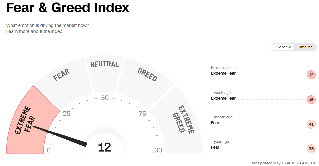 3일 전까지만 하더라도 대중의 공포지수를 나타낸다는 VIX 지수는 35를 돌파하였고, CNN에서 발표하는 FEAR & GREEDY INDEX도 수치가 6으로 떨어졌습니다. (숫자가 낮을수록 공포)