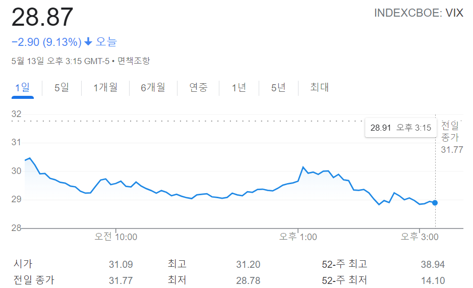 < 첫 번째 캡처 사진 : VIX 지수(출처 : 구글) / 두 번째 캡처 사진 : 공포&탐욕 지수(출처 : CNN) >