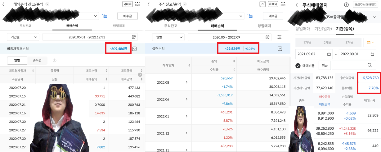 제가 항해사의 일을 시작하면서 2년 반이 넘는 기간 동안, 합산해보자면 7,167,779원의 손실을 기록 중입니다.