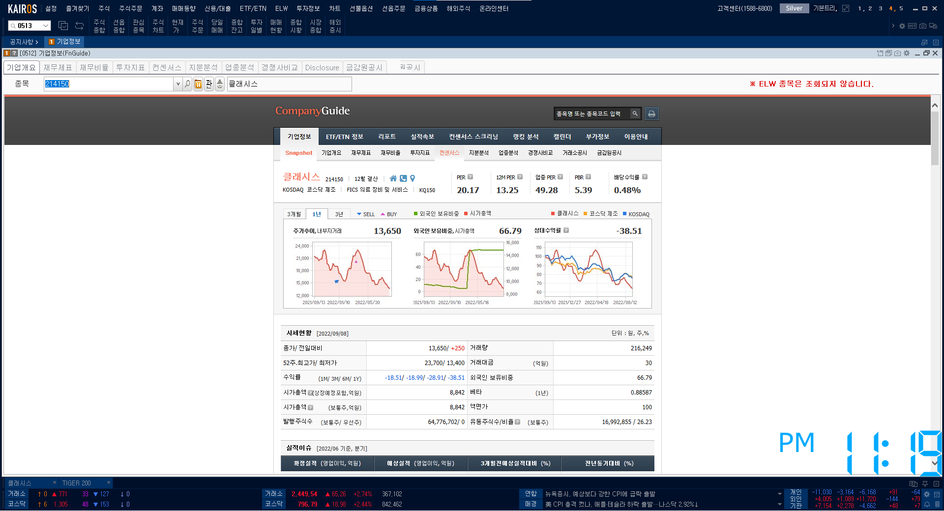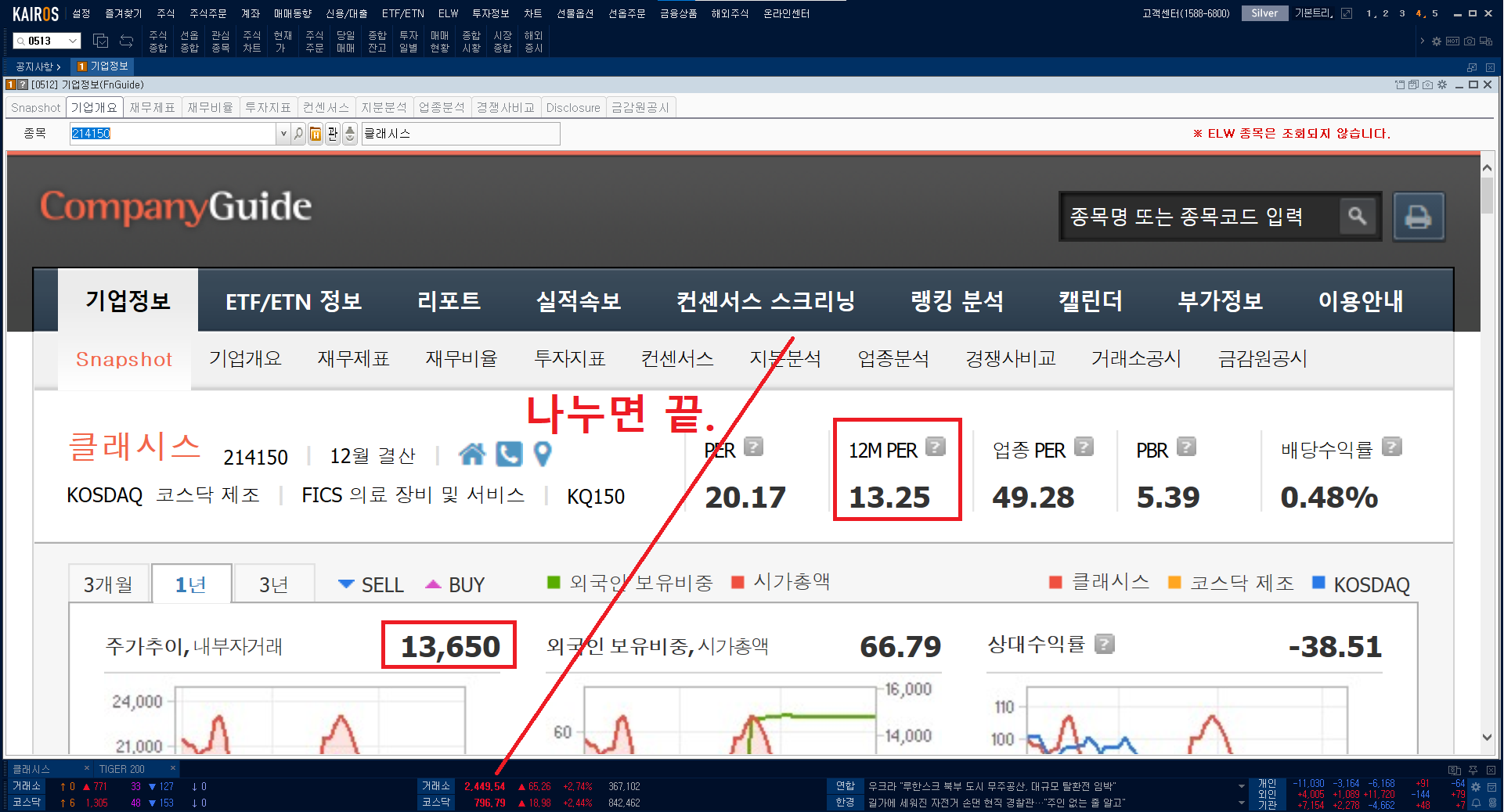 다시 본론으로 돌아와서, 저는 미래에셋 카이로스 HTS 프로그램을 통해 찾아볼 것입니다.