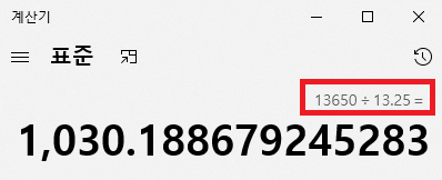 이를 나누게 되면, 약 12mf EPS가 1,030으로 산출됩니다.