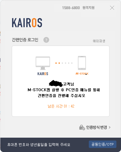 3. 설치가 완료된 후, 간편 인증 혹은 각종 인증수단을 이용하여 로그인합니다.
