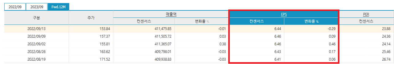 이로써 12mf EPS 추정치와 내년도 EPS 추정치를 찾는 방법에 대해서는 마무리를 짓도록 하겠습니다.