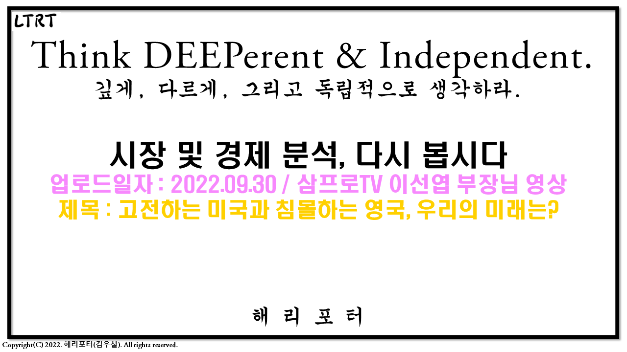 - 추가적으로, 제가 지금 열심히 공부 중에 있는 오건영 부부장님의 인터넷 강의 자료 1페이지를 가져왔습니다. 사실 유료 강의이지만, 여러분들 모두 알고 계셔야 하는 기본 상식이라 판단하여, 문제가 있으면 아래 사진은 날릴(?) 거지만 꼭 생각해보시기 바랍니다.