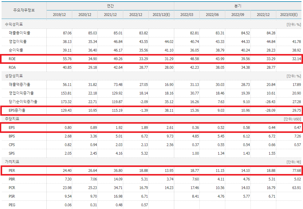 그리고 이는 2021년 기준 TRAILING PER은 200배, 그리고 2022년 34배까지 내려오게 되었습니다.
