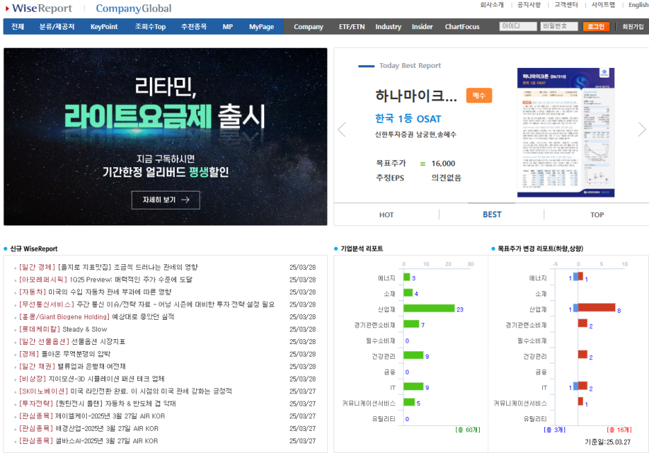 네이버 증권이나 한경컨센서스에는 없는 자료들도 여러가지 자료들은 다 이곳에서 볼 수 있고, 일/주/월간 산업 동향, 기업/산업 분석 등 좀 더 폭넓은 자료들을 이용할 수 있습니다.
