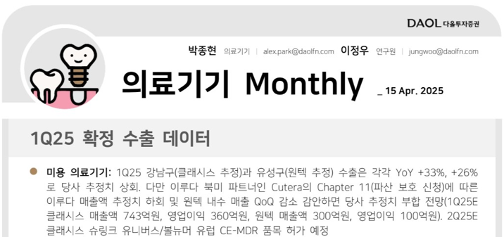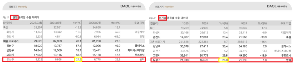 다올투자증권에서 의료기기(미용기기) 섹터를 담당하고 있는 박종현 애널리스트, 이정우 연구원의 확정 수출 데이터 자료로 간단하게 알아볼건데요.