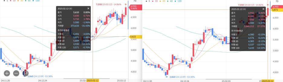 [2024년 12월 03일은 대한민국 증권시장에는 안타깝고 무서웠던 정치 이슈가 발생했던 시기였기에 단기적으로 모든 기업들의 주가가 빠졌던 바겐세일(?)기간이었으니 2024.12.04~2025.01.04의 기간의 주가는 크게 개의치 않으셨으면 좋겠습니다.]